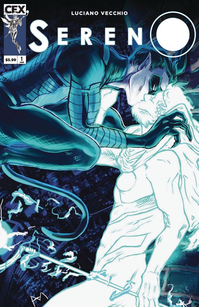 Meet SERENO, the Mystic Master of Light and guardian of New Teia, a city where magic and science intertwine by night! An avatar of collective Paranoia, a shepherd of Nightmares, and a Cult of Hate are just the start of an evil conspiracy transforming the city. Can Sereno fight back while keeping super cat burglar Rufián from stealing… his heart? A double-sized debut issue for only $5.99! Super cool covers by Luciano Vecchio and Agustine Manso, plus a Superman homage cover on Cover D!