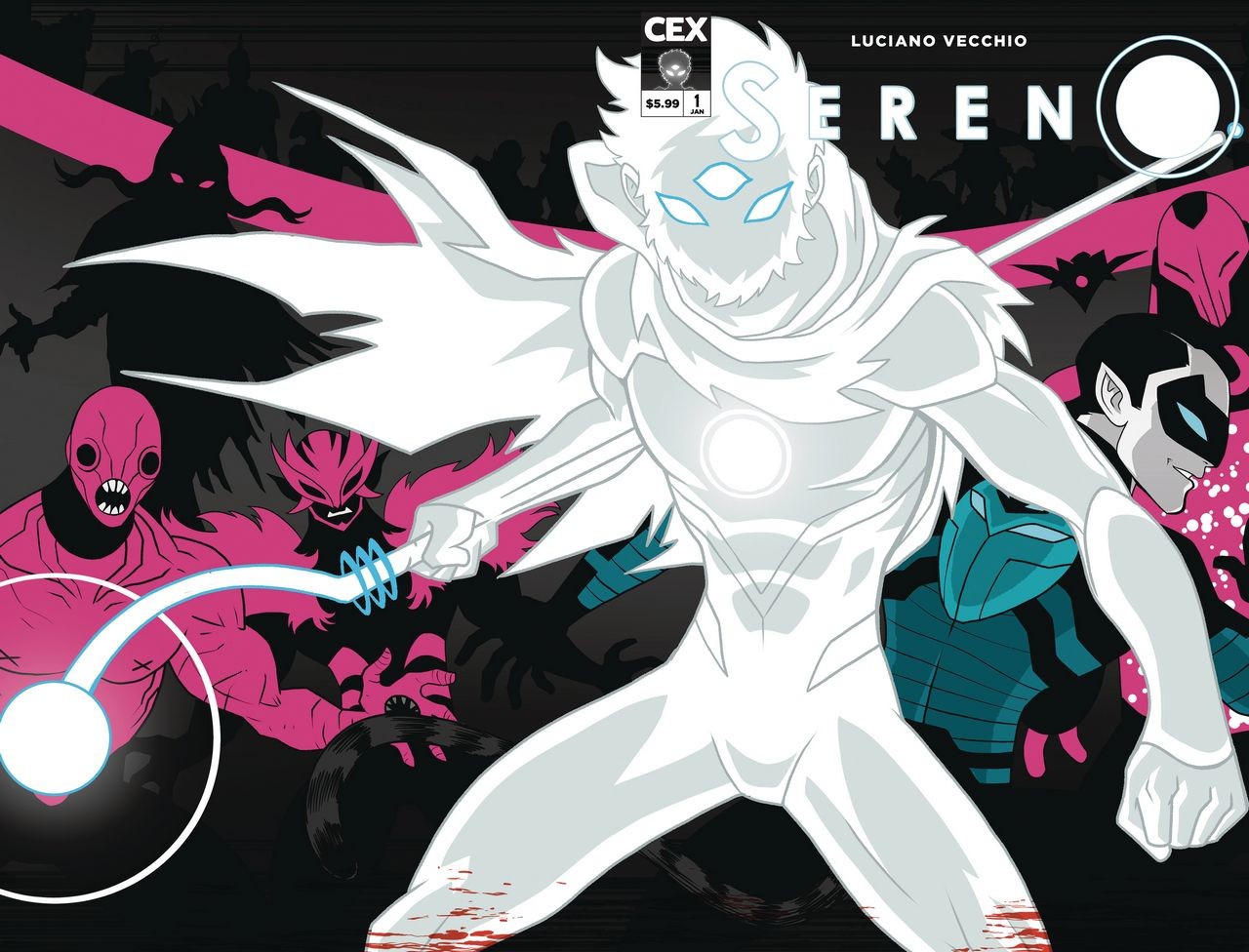 Meet SERENO, the Mystic Master of Light and guardian of New Teia, a city where magic and science intertwine by night! An avatar of collective Paranoia, a shepherd of Nightmares, and a Cult of Hate are just the start of an evil conspiracy transforming the city. Can Sereno fight back while keeping super cat burglar Rufián from stealing… his heart? A double-sized debut issue for only $5.99! Super cool covers by Luciano Vecchio and Agustine Manso, plus a Superman homage cover on Cover D!