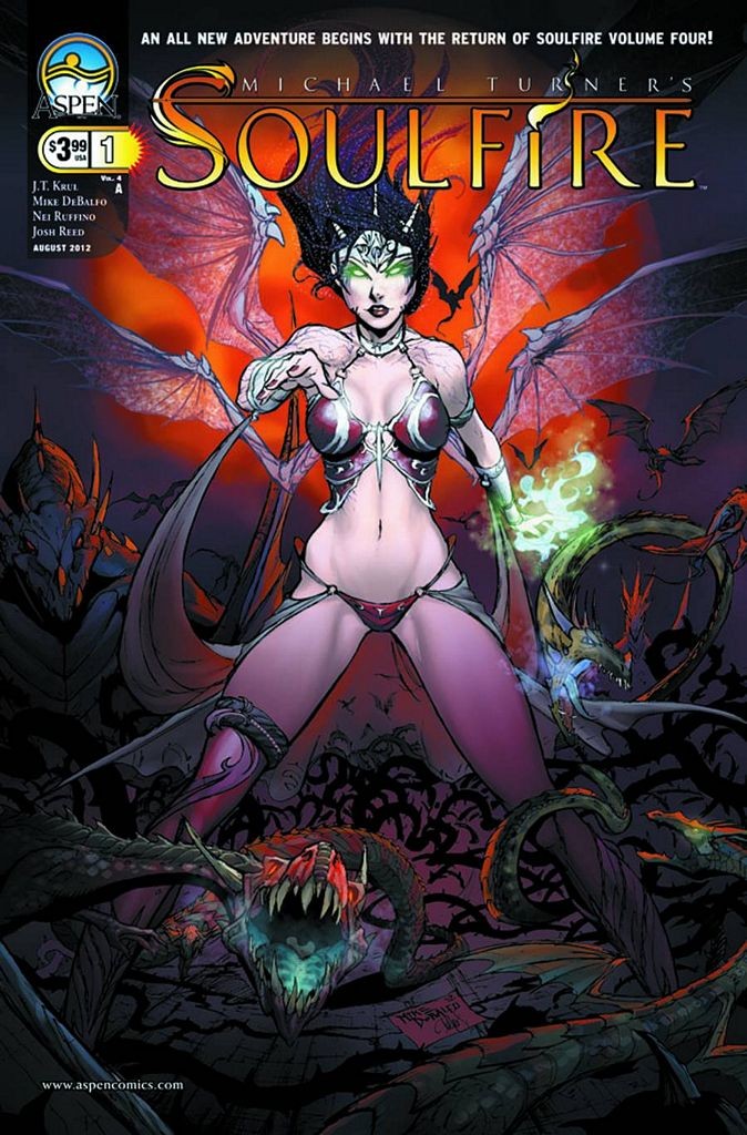 Michael Turner's epic fantasy adventure surges forward into a new era! The Bearer of the Light, Malikai, is back--alive and well with his closest friends. The balance of magic has been restored to the world, but there are still signs of a coming chaos - one greater than anything ever seen before. The Master and his greatest teacher, Grace, has fought for the light and all that encompasses it her entire life, but when the darkness takes a hold of her in the process-- the entire SOULFIRE universe will fall into jeopardy as Dark Grace emerges! From veteran SOULFIRE scribe J.T. Krul, and featuring the Aspen debut of ultra-exciting artist Michael DeBalfo along with fan favorite colorist Nei Ruffino, this is the SOULFIRE tale three volumes in the making! New and returning fans will NOT want to miss out as the biggest SOULFIRE story ever told premieres right here!