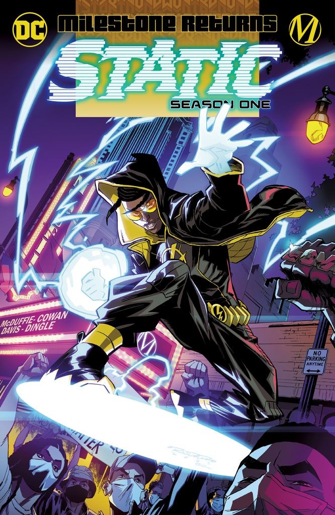 'At long last, the most famous face of the Milestone Universe is making his shocking return! Bullied nerd Virgil Hawkins wasn't the kind of kid you’d normally find on the streets at a protest—but like everyone else in the city of Dakota, he was fed up. Unfortunately, the first time he stood up to raise his voice, the world turned upside down. The experimental tear gas released that day left some of his classmates maimed or dead…but it left Virgil, and others, with stunning new abilities. Virgil has power inside him now—real power, the ability to channel and manipulate electromagnetic fields. But there’s anger burning inside him, too. What is he supposed to do about all of this? And first and foremost—what is he supposed to do about his bullies, now that they’ve got superpowers too? A dynamic creative team of new comics voices and Milestone Media veterans join forces to open up a new chapter in the story of the most iconic Black teen superhero in comics history. Collects Milestone Returns: Infinite Edition #0 and Static: Season One #1-6.'