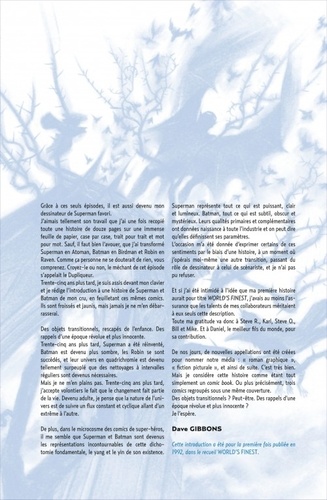 Quand le Joker et Lex Luthor décident d'échanger le terrain de leurs méfaits, Metropolis et Gotham City subissent des vagues de crimes sans précédent. Superman et Batman vont s'allier pour la première fois et mettre de côté leurs différends pourtant profonds. Superman & Batman - L'étoffe Des Héros offre aux deux icônes de DC Comics un duo d'artistes d'exception. Dave Gibbons (Watchmen) signe un récit exemplaire mettant en parallèle le Chevalier Noir et l'Homme d'Acier en prenant appui sur leurs cités respectives, tandis que Steve Rude (Nexus) réalise des planches détaillées où évoluent les versions épurées des héros, entre classicisme et modernité.
