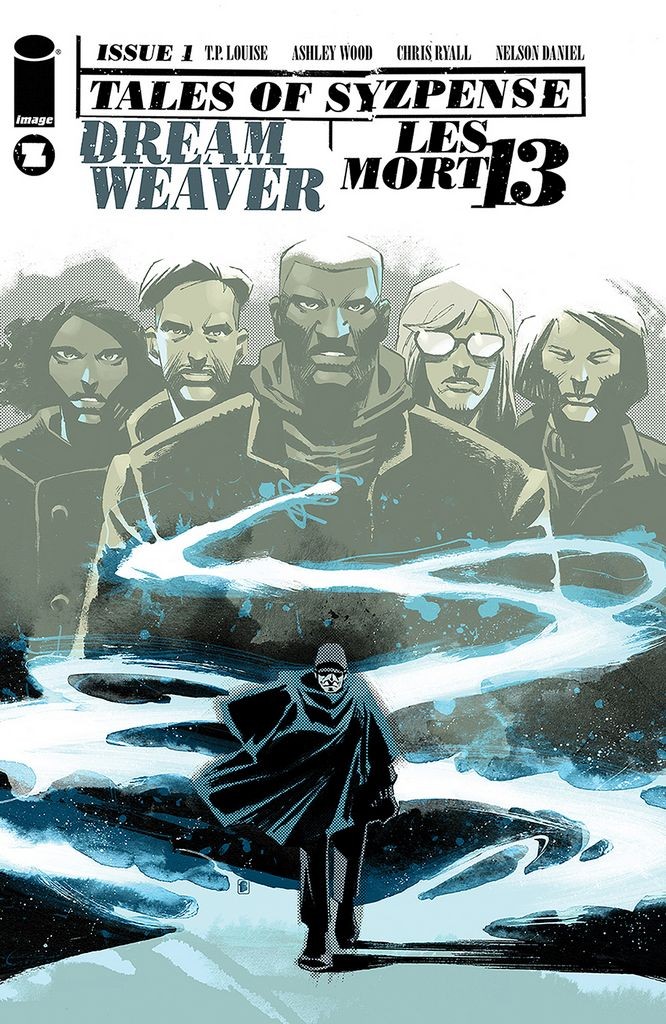 The split book revival continues at Syzygy! In T.P. LOUISE & ASHLEY WOOD's 'Les Mort 13,' Les Mort is schooled in the way of the unseen world, and he may not survive the experience! In 'Dreamweaver' by CHRIS RYALL & NELSON DANIEL, the aged mystic's attempts to pass on his abilities to the much younger Jennica Howard threaten to ruin his life and prematurely end hers!