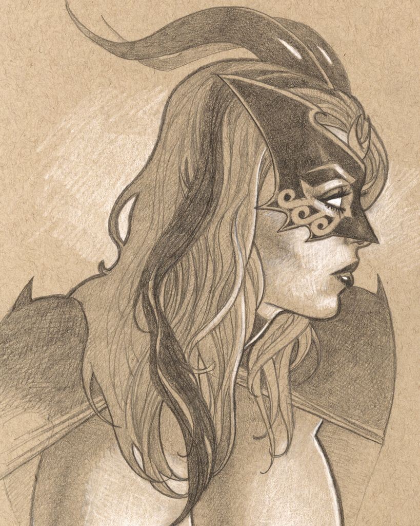 Jim has created an art print of of Tarot with her new look using graphite and white charcoal on tan tone paper, This Deluxe art print titled 'Facing a New Foe' will be produced in full color to capture all the nuances of Jim's master shading. This limited edition comes bagged and boarded and includes a copy of Tarot #139 (either an unsigned edition with Cover A or Cover B). Print comes signed by the artist, Jim Balent.