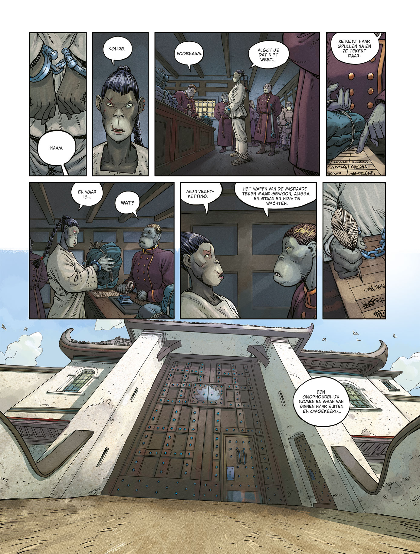 Deel 1 van de nieuwe cyclus van 6 Van striptekenaar Lereculey kennen we volgende stripreeksen of werkte mee aan sommige stripreeksen : 1. Arthur 2. Toen 3. Dodenwake 4. Golias 5. Wollodrin 6. Zeven van strip scenarist Lewelyn kennen we volgende stripreeksen of werkte hij mee aan sommige delen uit deze stripreeksen : géén Alysandra viert feest: Keona, de dochter van de koningin, is weer thuis. In de achterbuurten van de dertiende wijk wordt er een andere vrijlating gevierd: die van de geduchte Alissa. Haar oom Djen, die de leiding over de clan van het Sistrum heeft overgenomen, maakt zich op om haar de sleutels te overhandigen van het clandestiene rijk… Dat plots op zijn grondvesten zal daveren door een onverwacht en bruut voorval. Een nieuwe, beklijvende cyclus in onze beestige Game of Thrones, in het rijk der aapachtigen!