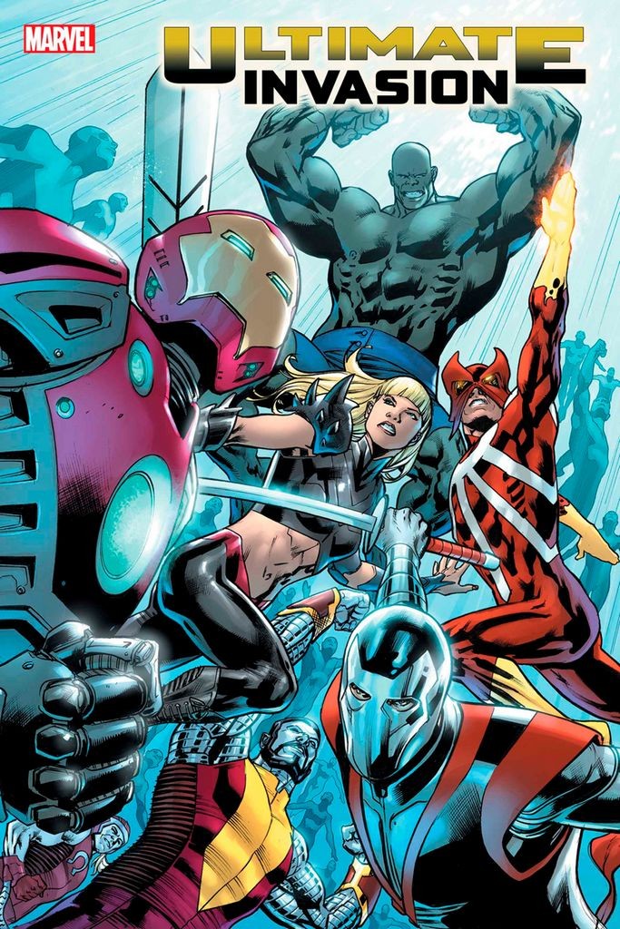 After KANG descends upon the City of Tomorrow, the Illuminati must regroup! IRON MAN has a heart-to-heart with Tony Stark! DOCTOR DOOM - the anti-Maker - prepares his own plans to deal with this evil Reed Richards… and the Ultimate Universe that the Maker thought he had rebuilt frays at the edges as they prepare for cosmic war! Rated T+