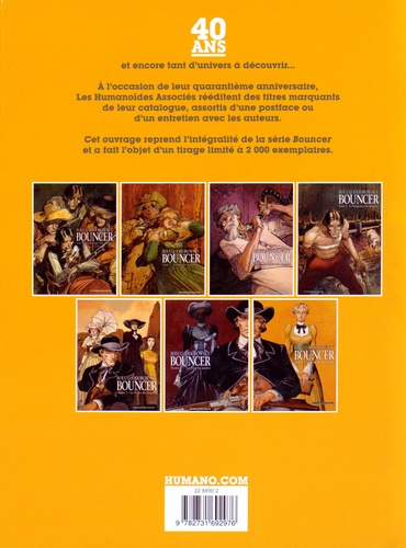 A l'occasion de leur quarantième anniversaire, Les Humanoïdes Associés rééditent des titres marquants de leur catalogue, assortis d'une postface ou d'un entretien avec les auteurs. Cet ouvrage reprend l'intégralité de la série Bouncer et a fait l'objet d'un tirage limité à 2000 exemplaires.