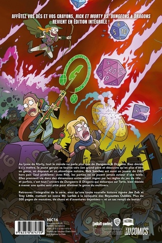 Prenez vos dés, vos crayons et votre grimoire, car Rick et Morty Vs. Donjons & Dragons revient dans une édition intégrale ! Au lycée de Morty, tout le monde ne parle plus que de Donjons & Dragons. Bien décidé à s'y mettre, le jeune garçon se tourne vers son grand-père et découvre qu'en plus d'être un génie, un dépravé et un alcoolique notoire, Rick Sanchez est aussi un joueur de D&D hors pair. Seul problème : avec Rick, les parties ne se jouent jamais autour d'une table. Elles prennent vie dans des dimensions entièrement régies par les règles du jeu de rôle... et parfois, c'est tout l'univers de Donjons & Dragons qui débarque sur Terre, bien décidé à mener une quête sans pitié pour éliminer le génie du multivers. Retrouvez l'intégralité de la série, ainsi qu'une toute nouvelle histoire signée Jim Zub et Troy Little, mettant en scène Mr. Larbin à la conquête des Royaumes Oubliés. Plus de 300 pages de monstres, de chaos et d'aventures déjantées et un sac rempli de bonus ! " Bien plus qu'un crossover amusant, Rick and Morty Vs. Dungeons & Dragons dépasse toutes nos attentes : c'est aussi une excellente aventure, une rétrospective de l'histoire de D&D, et un manifeste sur ce qui nous motive à jouer. " Comicbook. com " Parmi les meilleurs épisodes de Rick and Morty en termes de scénario et de narration. " Inverse. com
