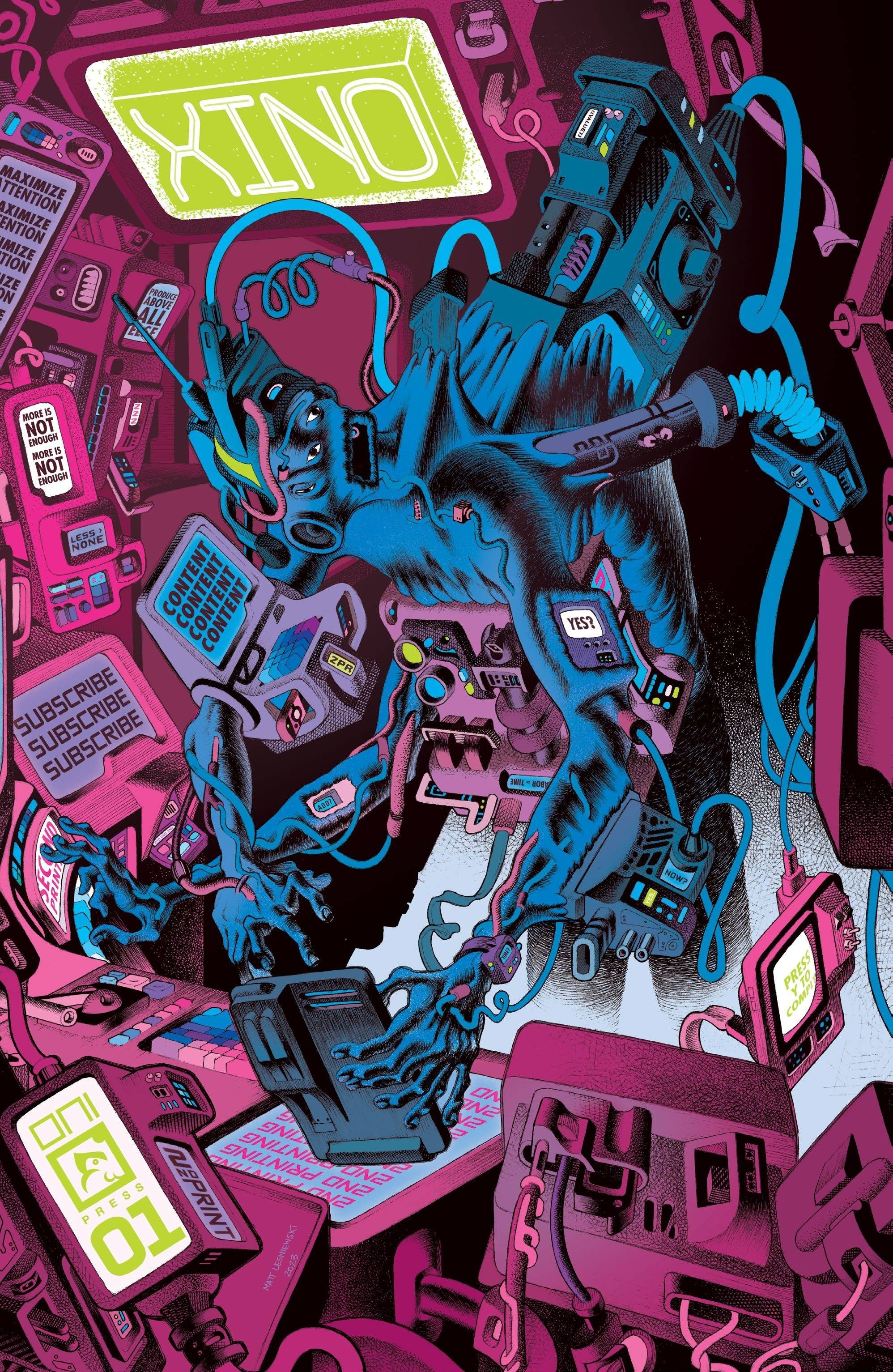 Because the future is getting weirder everyday, we give you XINO #001-the first of three OVERSIZED, 40-PAGE intra-ocular lozenges of subversive, surrealist science-fiction to cure your awful awareness of it all. Try not to worry-the insertion process will be guided by the megawatt brilliance of Oni's brightest talents (past, present, and future) as they slowly tune your hopes, dreams, desires, paranoia, alienation, anxiety, and adrenaline to produce the desired results. In our first exploratory outing: Rising stars Melissa Flores (The Dead Lucky, Mighty Morphin Power Rangers) & Daniel Irizarri (Judge Dredd) surgically activate the hidden dimensions of the human senses; cult phenoms Christopher Condon (That Texas Blood) and Nick Cagnetti (Pink Lemonade) debut the world's first intravenous video game system; Underground radicals Jordan Thomas (Weird Work) and Shaky Kane (Bulletproof Coffin) surveil the suburbs for signs of covert infiltration, and master cartoonist and foundational Oni creator Phil Hester (Gotham City: Year One, The Coffin) returns to the fold to leave his deepest mark yet!