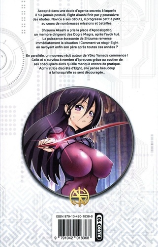 L'auteur de Ken-Ichi, le disciple ultime nous régale avec une comédie scolaire dynamique et renversante dans un lycée pour agents secrets. Accepté dans une école d'agents secrets à laquelle il n'a jamais postulé, Eight Akashi fifinit par y poursuivre des études. Novice à ses débuts, il progresse petit à petit, au cours de nombreuses missions et batailles. Shizuma Akashi a pris la place d'Apocalyptico, un membre dirigeant des Dogra Magra, après l'avoir tué. La puissance écrasante de Shizuma renverse immédiatement la situation ! Comment va réagir Eight en revoyant enfifin son père après toutes ces années ? En parallèle, un nouveau récit autour de Yôko Yamada commence ! Celle-ci a survécu à nombre d'épreuves grâce au soutien de ses coéquipiers alors qu'elle manque encore de pratique. Admiratrice discrète d'Eight, elle pense beaucoup à lui lorsqu'elle se sent découragée...