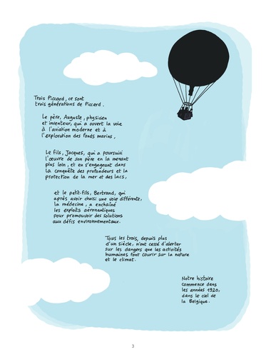 Auguste, Jacques et Bertrand Piccard : Trois générations de "savanturiers" , dont chacune a contribué à repousser les limites de notre monde : Auguste, premier explorateur de la stratosphère, et inventeur du bathyscaphe avec lequel Jacques a battu un record de profondeurs dans la fosse des Mariannes. Quant à Bertrand, il fera le premier Tour du Monde en ballon avant de se lancer dans l'aventure des énergies renouvelables avec Solar Impulse, l'avion solaire. Une chronique familiale et scientifique racontée avec humour par Jean-Yves Duhoo, et le concours actif et bienveillant de Bertrand Piccard qui lui a ouvert ses archives.