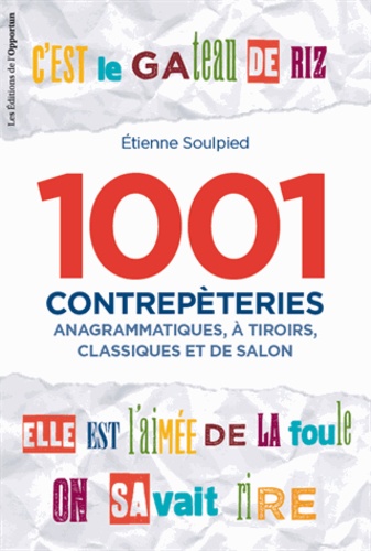 Que vous soyez néophyte, amateur éclairé ou grand spécialiste de l'art de décaler les sons, ces 1 001 contrepèteries ont de quoi vous occuper un bon moment ! Etienne Soulpied nous offre ici la quintessence de cette tradition si française que l'on perpétue depuis cinq siècles. Initié (inventé ?) par François Rabelais et Etienne Tabourot au XVIe siècle, l'art de la contrepèterie est toujours dans l'air du temps, si l'on en croit les journaux satiriques, notamment. C'est des petits entremets et ils sont à déguster subtilement, bien dissimulés derrière des sons chastes : C'est que c'est verrouillé ! Pour une gymnastique de l'esprit à la provocation délicieuse, ce recueil divertissant et exigeant regroupe 1 001 contrepèteries de difficultés variées, anagrammatiques, à tiroirs, classiques ou de salon. Et pour que tout le monde en profite, ces énoncés apparemment innocents sont accompagnés des solutions et des variantes de contrepets. Des correspondances phonétiques croustillantes (et plus si affinités) qui n'auront plus de secrets pour vous ! Attention oreilles chastes et pures, ce jeu de phonèmes est parfois coquin pour ne pas dire grivois ! Spécialiste masqué des contrepèteries, Etienne Soulpied nous livre ici la crème de la crème de son art de prédilection.