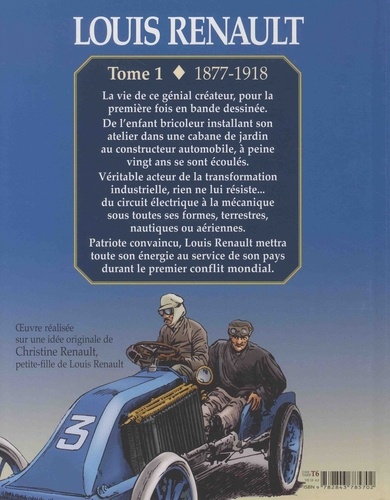 La vie de ce génial créateur, pour la première fois en bande dessinée. De l'enfant bricoleur installant son atelier dans une cabane de jardin au constructeur automobile, à peine vingt ans se sont écoulés. Véritable acteur de la transformation industrielle, rien ne lui résiste... du circuit électrique à la mécanique sous toutes ses formes, terrestres, nautiques ou aériennes. Patriote convaincu, Louis Renault mettra toute son énergie au service de son pays durant le premier conflit mondial.