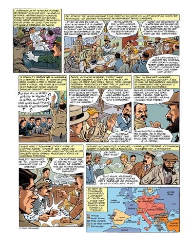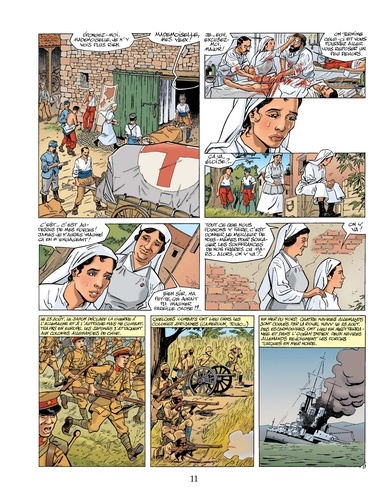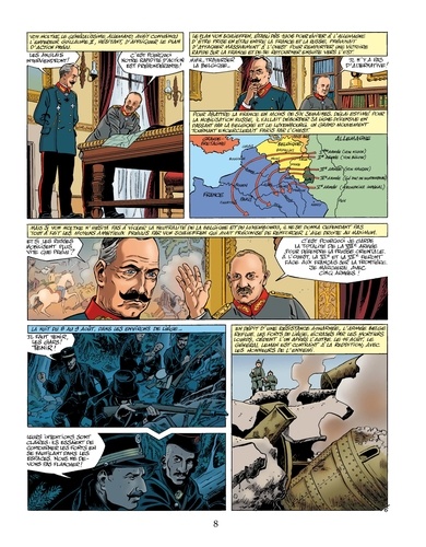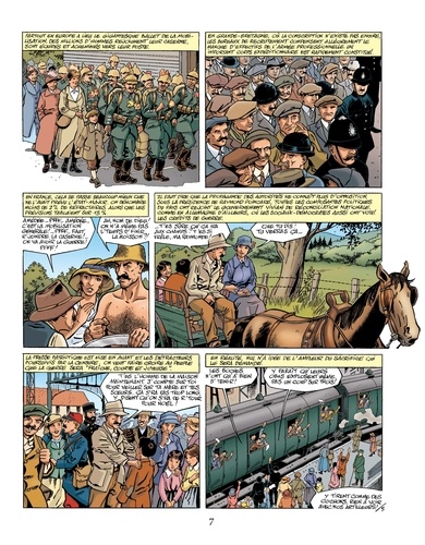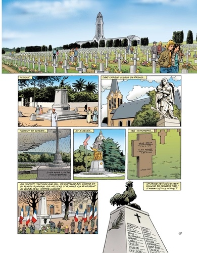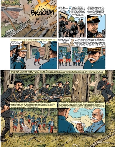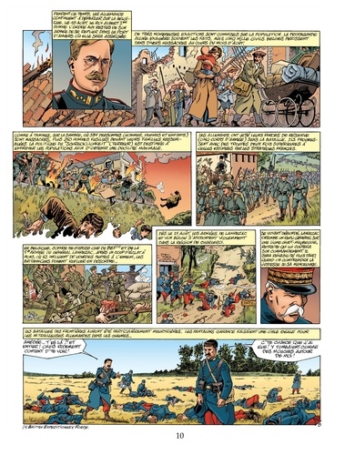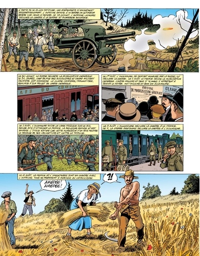 Pourquoi la guerre 14-18, pourquoi cette boucherie qui a saigné l'Europe de plus de huit millions de ses enfants ? Des questions auxquelles tente de répondre cette nouvelle passionnante création en deux volumes des éditions du Triomphe, signée, texte et dessins, par le talentueux Philippe Glogowski, dessinateur, entre autres, de la célèbre Histoire de la Légion en quatre volumes. Le premier tome ... de Sarajevo à Verdun nous fait vivre les deux premières années du conflit. Le second, quand il paraîtra, nous conduira jusqu'à l'armistice de 1918. Sans être ennuyeux, avec pédagogie, l'auteur nous explique et nous montre, à travers des dessins très vivants, les débuts et les enchaînements des évènements qui, à cause des alliances, allaient conduire à la catastrophe. L'assassinat à Sarajevo du prince héritier austro-hongrois François- Ferdinand allait mettre le feu aux poudres. Un feu qui couvait sous la cendre. Depuis sa défaite de 1870 où elle avait perdu l'Alsace-Lorraine, la France espérait la revanche. L'Allemagne, devenue la première puissance militaire mondiale avec une démographie galopante, rêvait d'étendre ses frontières et de se constituer un empire colonial. Au début des hostilités, la France n'est visiblement pas prête. Son armement est désuet et la conception de la guerre de ses généraux n'a pratiquement pas évolué depuis l'époque napoléonienne. On charge encore à la baïonnette ou à cheval, sabre au clair, devant les mitrailleuses et canons teutons. Cette guerre sera celle de l'artillerie, la nouvelle reine des batailles, des débuts de l'aviation, des premiers sous-marins et des chars d'assaut. En dépit d'une réelle infériorité en armement lourd et l'incapacité de certains généraux, les poilus résistent avec acharnement. Paysans essentiellement, ils se battent pour leurs familles et leurs terres. Malgré les souffrances, la faim, la soif, la boue des tranchées, les gaz, ils vont arrêter le flot "vert de gris" grâce à quelques généraux d'exception qui les respectent et ne les considèrent pas comme de la chair à canon. Pétain en est le grand exemple. Philippe Glogowski nous fait ainsi participer aux diverses opérations en France, mais également à l'étranger, et nous éclaire sur la vie quotidienne de ces hommes, mais également des troupes coloniales, des infirmières et des femmes qui, désormais, remplacent leur mari, leur frère et même leur père au champ ou à l'usine. Une grande BD, une grande page de notre histoire, à lire à partir de 12 ans.