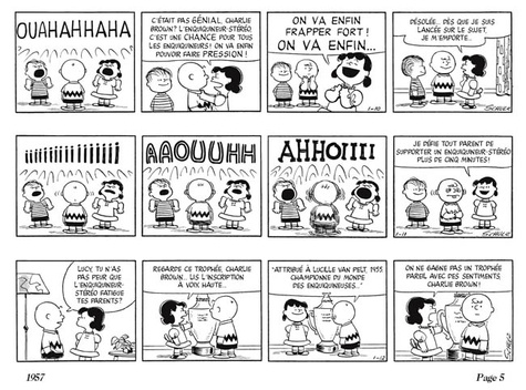 Notre beagle préféré s'épanouit pleinement dans ce quatrième volume de l'intégrale Peanuts Snoopy convoite la couverture de sécurité de Linus, multiplie mimes et sketches, rejoint l'équipe le base-ball et à la fin du recueil, commence même à dormir sur le toit de sa niche évolution capitale, qu'on se le dise ! Bien entendu, les fans de Schroeder, Lucy. Linus, Patty, Pig-Pen. Shermy, Violette et Charlie Brown ne seront pas en reste et trouveront leur bonheur dans une cascade de strips hilarants, parmi lesquels quelques centaines restés inédits en album à ce jour
