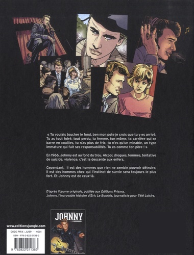 «Tu voulais toucher le fond, ben mon pote je crois que tu y es arrivé. Tu as tout foiré, tout perdu, ta femme, ton môme, ta carrière qui se barre en couilles, tu n’as plus de fric, tu n’es qu’un minable, un type immature qui fuit ses responsabilités. Tu es comme ton père !». En 1966, Johnny est au fond du trou. Alcool, drogues, femmes, tentative de suicide, violence, c’est la descente aux enfers. Cependant, il est des hommes que rien ne semble pouvoir détruire, il est des hommes chez qui l’instinct de survie sera toujours le plus fort. Et Johnny est de ceux-là. D’après l’oeuvre originale, publiée aux Editions Prisma, Johnny, l’incroyable histoire d’Eric Le Bourhis, journaliste pour Télé Loisirs.