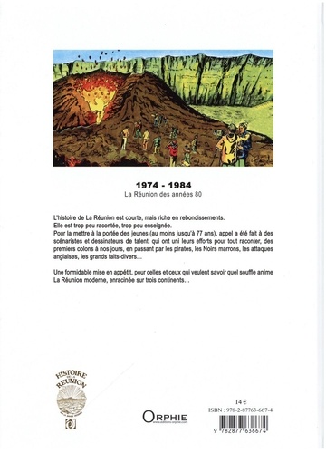 L'histoire de La Réunion est courte, mais riche en rebondissements. Elle est trop peu racontée, trop peu enseignée. Pour la mettre à la portée des jeunes (au moins jusqu'à 77 ans), appel a été fait à des scénaristes et dessinateurs de talent, qui ont uni leurs efforts pour tout raconter, des premiers colons à nos jours, en passant par les pirates, les Noirs marrons, les attaques anglaises, les grands faits-divers... Une formidable mise en appétit, pour celles et ceux qui veulent savoir quel souffle anime La Réunion moderne, enracinée sur trois continents...