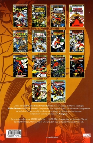 Créée par Archie Goodwin et Marie Severin dans les pages de Marvel Spotlight, Spider-Woman obtient rapidement son premier titre régulier. Après de fréquents changements de statut au fil des ans, elle continue de protéger la planète à notre époque, notamment comme membre des Avengers.