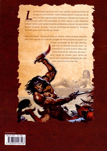 Les Chroniques de Conan sont une reprise incontournable de Savage Sword of Conan. Cette réimpression intégrale de la série la plus significative retraçant l'épopée de Conan est présentée par ordre chronologique. De Barry Smith à John Buscema et Neal Adams, une lignée d'artistes prestigieux a donné vie aux scripts de Roy Thomas, d'après l'oeuvre mythique de Robert E Howard. Un must pour tout vrai fan de Conan ! Dans cet album, Conan affronte un démon voleur d'âmes, traverse une forêt hantée à la tête de troupes de mercenaires et assiste au retour inattendu de Bor'aqh Sharaq, que tout le monde croyait mort. Le Cimmérien se rend ensuite dans une autre dimension, affronte des guerriers nains en Stygie, puis tâche de sauver une princesse kidnappée par une secte adoratrice du dieu Rat.