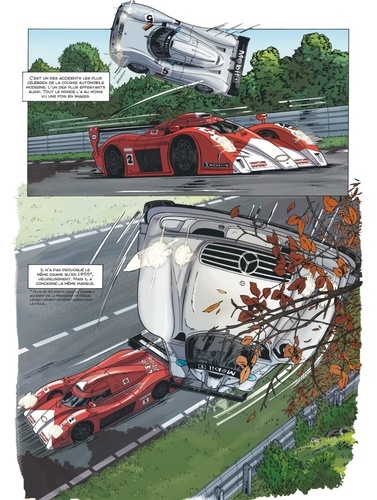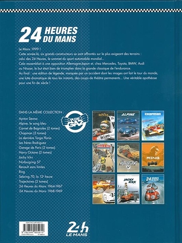Revivez en BD les grands moments de la plus célèbre des courses d'endurance ! Le 12 juin 1999, dans la portion d'Indianapolis du circuit des 24 Heures du Mans, la Mercedes CLR n°5 lancée à plus de 300 km/h perd l'appui et commence à décoller, tel un avion, puis tourne trois fois en l'air avant de s'écraser sur les arbres en bord de piste. C'est l'un des accidents les plus célèbres et les plus spectaculaires de la course automobile moderne. Personne ne croit une seconde que le pilote est en vie. Les pace-cars et le personnel de sécurité accourentà son secours. Et pourtant, à la stupeur générale, Peter Dumbreck s'en sortira indemne. L'édition 1999, marquée par cet accident spectaculaire, restera aussi comme la course ayant vu s'affronter tous les plus grands constructeurs une dernière fois avant la fin du siècle. Nouvel arrivant dans la collection Plein Gaz, LF Bollée raconte la course incroyable de 1999 des 24 Heures du Mans - qu'il a lui-même couverte en tant que journaliste sportif ! Album officiel réalisé en collaboration avec les 24 Heures du Mans.