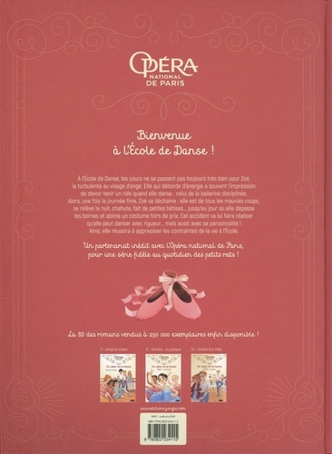 Un nouveau tome dans l'univers des danseuses de l'Opéra de Paris ! A l'Ecole de danse, les cours ne se passent pas toujours très bien pour Zoé, la turbulente au visage d'ange. Elle qui déborde d'énergie a souvent l'impression de devoir tenir un rôle quand elle danse : celui de la ballerine disciplinée. Alors, une fois la journée finie, Zoé se déchaîne : elle est de tous les mauvais coups, se relève la nuit, chahute, fait de petites bêtises. Jusqu'au jour où elle dépasse les bornes et abîme un costume hors de prix. Cet accident va lui faire réaliser qu'elle peut danser avec rigueur. Mais aussi avec sa personnalité ! Ainsi, elle réussira à apprivoiser les contraintes de la vie à l'Ecole.