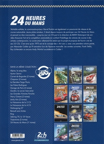 L'Art dans toute sa puissance Véritable esthète, le commissaire-priseur Hervé Poulain est également un passionné de vitesse et de course automobile. Jeune pilote amateur, il rêvait depuis toujours de participer aux 24 Heures du Mans et pensait ce rêve inaccessible... jusqu'au jour où il fit part à la direction de BMW Motorsport de son idée de promouvoir l'art en confiant l'habillage de voitures de course à des artistes contemporains. Le constructeur allemand fut séduit par le projet et proposa de fournir une de ses 3. 0 CSL à la condition qu'aucun autre sponsor ne soit présent sur la carrosserie et que BMW reste propriétaire de la voiture après la course. C'est ainsi qu'en 1975 est né le concept des "Art cars" , avec une première voiture peinte par Alexander Calder qui fit sensation lors de l'épreuve mancelle. Les années suivantes, Frank Stella, Roy Lichtenstein ou encore Andy Warhol succèderont à Calder et, même si aucune voiture ne montera sur le podium, cela reste une immense victoire pour Hervé Poulain qui a réussi son pari : associer la compétition, le design et l'art. Véritables oeuvres d'art roulantes, ces pièces uniques sont aujourd'hui conservées au Musée BMW à Munich. Préfacé par Hervé Poulain, ce onzième album consacré aux 24 Heures du Mans en bande dessinée revient sur un projet visionnaire l'année même où BMW fait son grand retour au Mans avec une nouvelle Art Car réalisée par l'artiste éthiopienne Julie Mehretu.