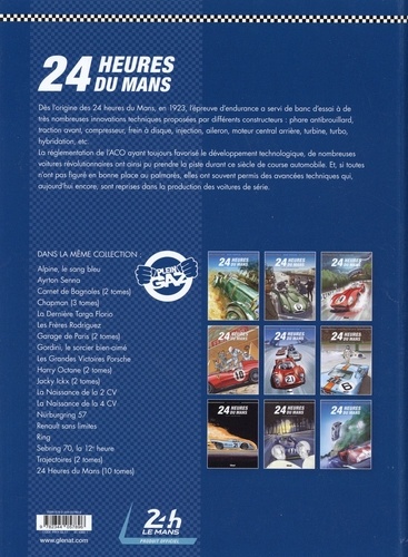 Revivez un siècle de légende automobile ! Depuis sa création en 1923, le rendez-vous des 24 Heures du Mans a connu des moments d'anthologie, des sacres et des drames qui ont rythmé un siècle de courses. Mais si la plus grande épreuve d'endurance automobile a vu bien des carrières décoller, elle a aussi été jalonnée de cent ans d'innovations techniques. Avec ce dixième volume de la collection publié à l'occasion du centenaire des 24 Heures du Mans célébré en 2023, Denis Bernard et Christian Papazoglakis passent en revue vingt-quatre voitures emblématiques de la course mancelle qui, si elles n'ont pas forcément triomphé, ont toutes marqué leur époque par des évolutions technologiques : la 4CV Renault (moteur arrière), la Tracta (traction avant), la Delettrez (diesel), la Chaparral (aileron), la Howmet (turbine), la Chenard et Walcker Tank (aérodynamisme), la Panoz Q9 (hybride), etc.