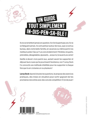 Ils ne se remettent jamais en question. Ils n'en loupent pas une. Ils ne se fatiguent jamais. Ils sont partout autour de nous, que ce soit au bureau, dans notre belle-famille, en vacances ou même parmi nos meilleurs potes ! Qui ça ? Les cons évidemment ! Pénibles, bruyants, prévisibles, désagréables, épuisants... avoue-le, toi aussi tu es cerné! Quitte à devoir vivre parmi eux, autant savoir les supporter et déjouer leurs ruses qui te pourrissent l'existence, non ? Leroy Deck t'a concocté une méthode infaillible pour les supporter à chaque fois que tu en croiseras un ou plusieurs ! Leroy Deck répond à toutes tes questions, te propose des exercices pratiques, des mises en situation pour sortir gagnant de tes prochaines rencontres avec des cons de compétition ! A toi de jouer !