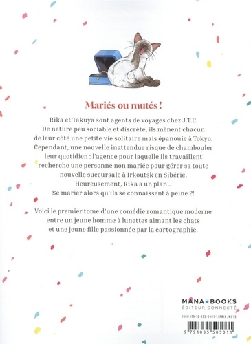 Rika et Takuya sont agents de voyages chez J.T.C. De nature peu sociable et discrète, ils mènent chacun de leur côté une petite vie solitaire mais épanouie à Tokyo. Cependant, une nouvelle inattendue risque de chambouler leur quotidien : l'agence pour laquelle ils travaillent recherche une personne non mariée pour gérer sa toute nouvelle succursale à Irkoutsk en Sibérie. Heureusement, Rika a un plan... Se marier alors qu'ils se connaissent à peine ? ! Voici le premier tome d'une comédie romantique moderne entre un jeune homme à lunettes aimant les chats et une jeune fille passionnée par la cartographie.