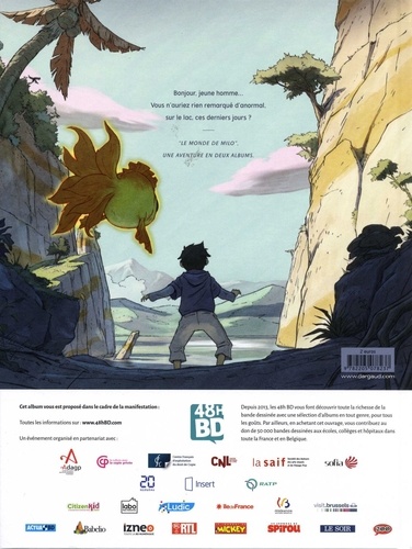Milo est un jeune garçon si souvent seul dans une maison au bord du lac. Un jour, il trouve un magnifique poisson d'or, et sa vie bascule ! Car après le merveilleux poisson, c'est un homme à tête de crapaud, puis un autre à tête d'aigle qui apparaissent, bientôt suivis par une jeune fille prisonnière. Milo découvre que, de l'autre côté du lac, existe un monde fantastique dans lequel une bataille entre le Bien et le Mal fait rage. Il comprend surtout qu'il n'est pas impliqué dans cette histoire par hasard... 1er tome du "Monde du Milo", une série tout public signée Richard Marazano et Christophe Ferreira, qui ravira les préados et les adolescents.