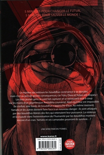 Le mystère qui entoure les bouddhas commence a se dévoiler, mais c'est au prix de graves conséquences, car Yûto, Oiwa et Yuliya ont disparu ! Les trois jeunes gens se sont fait capturer et se retrouvent tout à coup sur les mains d'un gigantesque Amitabha couronné. Alors qu'il leur est impossible de s'enfuir, une horde de bouddhas s'approche d'eux. Au même moment, Yamato et les autres doivent faire face à un nouveau danger : ils sont attaqués par des bouddhas libérés des fers qui retenaient leur puissance. La violence et la cruauté dans l'extermination de l'humanité par les bouddhas montent encore d'un cran. Yamato et ses camarades pourront-ils survivre...?