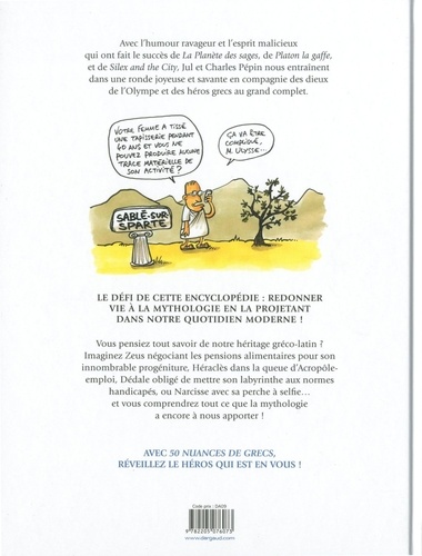 "50 Nuances de Grecs" remet en scène les plus grands mythes de l'Antiquité grecque dans les situations les plus actuelles... Hercule à Acropôle-Emploi, Zeus chez son avocate pour négocier les pensions alimentaires, Icare lançant une compagnie aérienne low-cost ou le dieu Pan mis en examen pour ses liens avec un proxénète surnommé "Dionysos-la-Saumure"... : Retrouvez l'Olympe au grand complet, à travers notre héritage commun. Avec leur oeil malicieux et leur art du détournement, Jul et Pépin revisitent ce patrimoine mythologique, dans une encyclopédie drôle et savante, où défilent tous les travers de notre société !