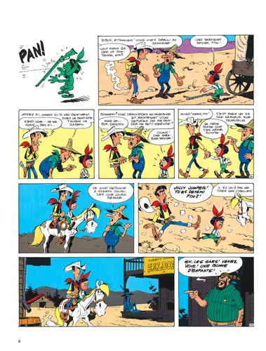 Ce personnage immortel parcourt depuis 1946 l'histoire de l'ouest américain. Il y a rencontré des personnages célèbres (Jesse James, Calamity Jane, Billy the Kid, Sarah Bernhardt...). Lucky Luke est l'homme des missions impossibles, le défenseur des pauvres, des veuves et des orphelins, bref le parfait héros ! Son cheval, Jolly Jumper, est un parfait compagnon de ce "poor lonesome cowboy". Les frères Dalton se dressent perpétuellement sur le chemin de Lucky Luke ce qui permet à ce dernier de les poursuivre continuellement et de les confier à la justice. Autre personnage traditionnel de la série : Rantanplan, le chien le plus bête du farwest qui a vécut de façon autonome 2 albums. Lucky Luke est, avec Astérix et Tintin, le plus célèbre personnage de l'histoire de la BD : cette série, accessible à tous, est devenu un mythe grâce à Morris et Goscinny. Ce personnage a fait l'essentiel de sa formidable carrière dans les pages de SPIROU, PILOTE et LE JOURNAL DE LUCKY LUKE. Une exploitation merchandising et audiovisuelle (dont aux Etats-Unis) a permis d'introduire Lucky Luke auprès d'une très large couche de la population et auprès de plusieurs générations de lecteurs. A noter qu'après la disparition de Goscinny, plusieurs scénaristes ont travaillé sur la série : Vicq, De Groot, Fauche et Léturgie, Lodewijk, Lo Hartog Van Banda et Vidal. L'essentiel des albums se trouvent chez Dupuis et Dargaud. , la nouveauté chez Lucky Productions.