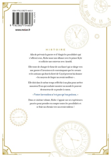 Afin de prévenir la guerre et d'élargir les possibilités qui s'offrent à eux, Rishe noue une alliance avec le prince Kyle et sollicite une entrevue avec Arnold. Elle tente de changer le futur de son fiancé qui se dirige vers une guerre d'invasion en le convainquant que les savants et les artisans qui font la fierté de Coyol peuvent lui donner " les moyens de forger un avenir meilleur ". Elle doit dans le même temps réfléchir à un plan pour arrêter monsieur Evan qui souhaite montrer au monde le pouvoir destructeur de sa poudre à canon". Votre invention n'est pas qu'un poison. "
