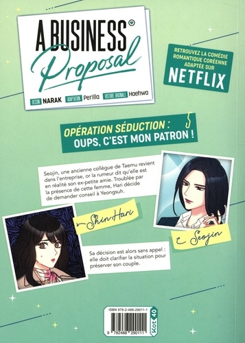 OPERATION SEDUCTION : OUPS, C'EST MON PATRON ! Seojin, une ancienne collègue de Taemu revient dans l'entreprise, or la rumeur dit qu'elle est en réalité son ex-petite amie. Troublée par la présence de cette femme, Hari décide de demander conseil à Yeongsuh. Sa décision est alors sans appel elle doit clarifier la situation pout préserver son couple.