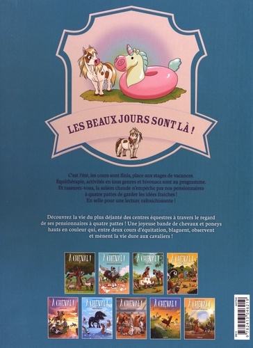C'est les vacances pour notre joyeuse bande de chevaux et poneys ! L'heure du repos estival a sonné ! A moins que les nouvelles activités proposées par le club ne viennent chambouler leur été... Garanti cent pur-sang humour et aventures hippiques ! Après une année bien remplie, il est temps pour les poneys du club de profiter des champs, de l'air pur et des balades en extérieur. Mais les stages d'équithérapie du club semblent modifier sensiblement le comportement de nos héros préférés. Bijou garde ses cavaliers sur son dos, Xanax reste calme et Cookie ne s'arrête pas pour manger à chaque instant...
