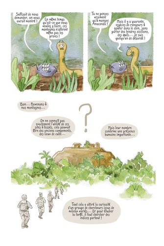 Dans une grande enquête, une vingtaine de chercheurs, de l'anthropologue au botaniste, en passant par la mycologue ou l'anthracologue, s'associent pour étudier les surprenantes " montagnes couronnées " amazoniennes... Autrefois densément peuplée, l'Amazonie n'a de forêt " vierge " que le nom. Mais desormais les signes archéologiques sont discrets et chaque indice est bon à prendre. En racontant cette mission de terrain qu'elle a elle-même suivie, Laure Garancher nous fait découvrir des professions scientifiques peu connues ainsi qu'un monde nouveau, caché sous la canopée de la plus grande forêt du monde...