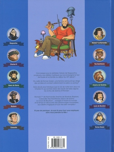 L'histoire est cruelle ! On peut être roi ou empereur, connaître un destin incroyable et mourir de la façon la plus idiote qui soit ! On peut remporter la plus grande des batailles ou découvrir un territoire inexploré et sombrer dans l'oubli ! Venez découvrir dix nouveaux portraits de grandes figures historiques (Raspoutine, Charles VI, Vasco de Gama...) plus vrais que natures, de manière ludique et amusante.