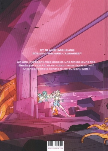 Et si une hackeuse pouvait sauver l'univers ? Un ado intelligent mais asocial, une timide jeune fille élevée par une I.A. et un robot romantique et naïf luttent ensemble contre le roi du Dark Web !