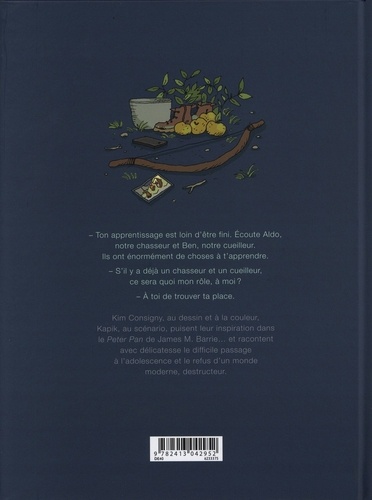 James, onze ans, décide de fuguer. Il rejoint les Enfants Perdus, des ados vivant en autarcie dans la forêt. Consigny et Kapik racontent avec délicatesse le passage de l'adolescence à la vie d'adulte et le refus d'un monde destructeur. D'abord séduit par la vie que mènent Damon, Ben, Aldo et l'Enfant, James découvre que ce monde n'est pas aussi accueillant qu'il se l'était imaginé. Rejoints par une troupe de jeunes filles, les Amazones, ils doivent fuir encore plus loin les adultes qui sont à leur recherche... Puisant leur inspiration dans Peter Pan , les auteurs signent un beau récit d'apprentissage.