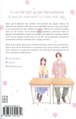 Dans A tes côtés, découvrez l'histoire d'amour entre une jeune fille qui ignore tout de ce sentiment et un garçon qui a trop d'amour à donner. Leur relation se construira, à tâtons, au fil des jours qui passent et de leurs premières expériences... Alors qu'ils fêtaient leur premier anniversaire de couple, Hotaru et Hananoï ont décidé d'aller plus loin ensemble, mais ils n'ont pas réussi à se comprendre et leur relation en pâtit. Même s'ils veulent prendre soin l'un de l'autre, ils ne savent plus comment y parvenir sans se blesser mutuellement. Après une longue introspection, Hananoï réalise enfin ce qui compte le plus pour lui et fait une proposition totalement inattendue à Hotaru pendant leur voyage scolaire...
