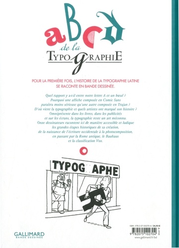 Pour la première fois, l'histoire de la typographie latine se raconte en bande dessinée. Quel rapport y a-t-il entre notre lettre A et un boeuf ? Pourquoi une affiche composée en Comic Sans paraîtra moins sérieuse qu'une autre composée en Trajan ? D'où vient la typographie et quels artistes ont marqué son histoire ? Omniprésente dans les livres, dans les publicités et sur les écrans, la typographie reste un art méconnu. Onze dessinateurs racontent ici de manière accessible et ludique les grandes étapes historiques de sa création, de la naissance de l'écriture occidentale à la photocomposition, en passant par la Rome antique, le Bahaus et la classification Vox.