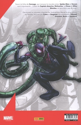 Face à la folie de Carnage, qui menace le monde entier, Spider-Man et Venom sont impuissants... L'aide de Captain America, Wolverine, la Chose et Miles Morales ne sera donc pas de trop ! Découvrez un nouveau chapitre de l'événement Marvel le plus délirant. de l'année, raconté par Cates et Stegman, accompagnés d'Ahmed, Vicentini, Bunn et Sandoval.