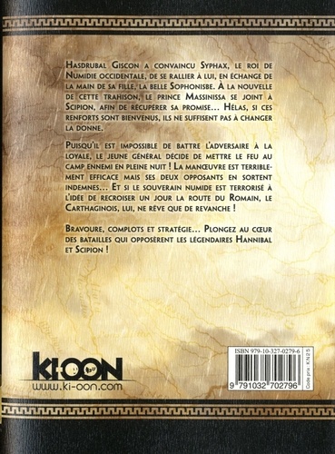 Hasdrubal Giscon a convaincu Syphax, le roi de Numidie occidentale, de se rallier à lui, en échange de la main de sa fille, la belle Sophonisbe. A la nouvelle de cette trahison, le prince Massinissa se joint à Scipion, afin de récupérer sa promise... Hélas, si ces renforts sont bienvenus, ils ne suffisent pas à changer la donne. Puisqu'il est impossible de battre l'adversaire à la loyale, le jeune général décide de mettre le feu au camp ennemi en pleine nuit ! La manœuvre est terriblement efficace mais ses deux opposants en sortent indemnes... Et si le souverain numide est terrorisé à l'idée de recroiser un jour la route du Romain, le Carthaginois, lui, ne rêve que de revanche !