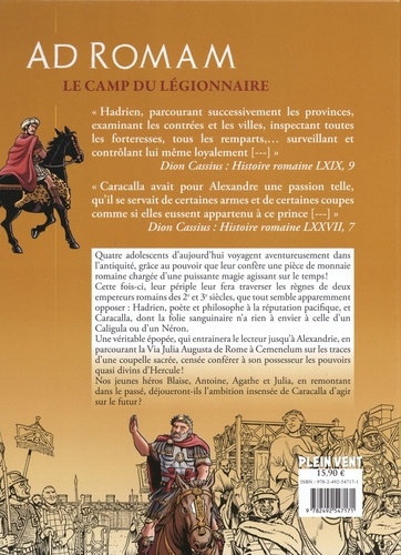 Quatre adolescents d'aujourd'hui voyagent aventureusement dans l'antiquité, grâce au pouvoir que leur confère une pièce de monnaie romaine chargée d'une puissante magie agissant sur le temps ! Cette fois-ci, leur périple leur fera traverser les règnes de deux empereurs romains des 2e et 3e siècles, que tout semble apparemment opposer : Hadrien, poète et philosophe à la réputation pacifique, et Caracalla, dont la folie sanguinaire n'a rien à envier à celle d'un Caligula ou d'un Néron. Une véritable épopée, qui entrainera le lecteur jusqu'à Alexandrie, en parcourant la Via Julia Augusta de Rome à Cemenelum sur les traces d'une coupelle sacrée, censée conférer à son possesseur les pouvoirs quasi divins d'Hercule ! Nos jeunes héros Blaise, Antoine, Agathe et Julia, en remontant dans le passé, déjoueront-ils l'ambition insensée de Caracalla d'agir sur le futur ?