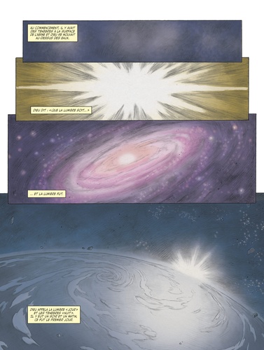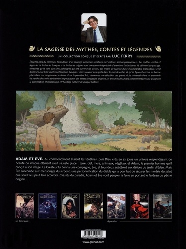Que la lumière soit. Au commencement, il y avait les ténèbres, puis Dieu créa en six jours un univers resplendissant de beauté où toute chose avait sa place : les animaux, les végétaux, le ciel, les étoiles et... Adam, le premier homme qu'il conçut à son image. Bientôt, Dieu donna à Adam une compagne, Eve, et tous deux goûtèrent aux joies de l'Eden. Mais Eve succombe à la tentation du serpent. En voulant avoir accès au Savoir, elle mange le fruit défendu. Par ce geste, elle enfreint les règles édictées par Dieu et provoque son courroux vengeur. L'homme se retrouve alors à devoir gagner son pain à la sueur de son front et la femme à enfanter dans la douleur. Chassés du paradis par l'archange Michel, Adam et Eve seront les premiers hommes à peupler la Terre en portant le fardeau du péché originel... " La Sagesse des mythes, contes et légendes " se penche sur le mythe fondateur d'entre tous, celui de la Genèse et des premiers hommes selon la Bible.