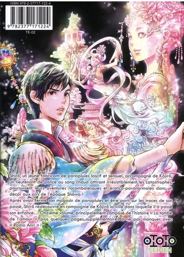 Shirô, un jeune fabricant de parapluies lascif et sensuel, accompagné de Kôjirô, un lieutenant de police au sang chaud attirant irrésistiblement les catastrophes, poursuivent leurs aventures rocambolesques et érotico-paranormales dans un décor aux airs de l'époque Shôwa ! Après avoir fermé son magasin de parapluies et être parti sur les traces de son passé, Shirô redécouvre en compagnie de Kôjirô la ville dans laquelle il a passé son enfance... Onzième volume, principalement composé de l'histoire "La tombe de l'amour", plus quelques pages supplémentaires à ne pas manquer avec "Radio Anri" !