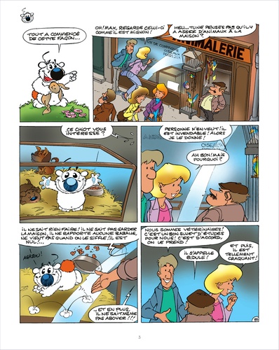 Que fait Bidule, le neveu de Cubitus, lorsqu'il ne squatte pas les planches de son tonton ? Eh bien, il est pensionnaire d'une clinique vétérinaire, tenue par un jeune couple qui essaie tant bien que mal de composer avec l'énergie débordante du jeune chiot. Car, non, il n'est pas plus calme à la maison ! En plus, il a plein de copains à poils et à plumes ! L'occasion pour Pierre Aucaigne et Michel Rodrigue de s'essayer à toutes sortes de gags plus délirants les uns que les autres, habités par un rythme et une nervosité dignes de Tex Avery.