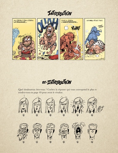 Le douloureux est susceptible, c'est bien connu, alors peut-on rire de toutes les douleurs avec tous les douloureux ? Bien sûr, en prescrivant anecdotes, petites histoires et traitements d'hier et d'aujourd'hui. Abordons ce sujet sérieux pas sérieusement mais avec l'objectif du sérieux... Vous suivez ? Patrick Sichère, médecin rhumatologue spécialiste de la douleur, et Achdé, dessinateur de Lucky Luke, nous renseignent sur les petits et gros bobos, leurs causes, leurs symptômes et leur remèdes, et ça ne fait pas de mal ! Migraine, rage de dents, mal de dos, douleurs fantômes, on a, on a eu, on aura tous une douleur en nous et ce n'est pas parce que le sujet est grave qu'il échappe au rire !
