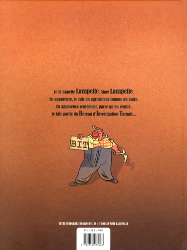 Aimé Lacapelle est un policier rural. Agent du B.I.T. (Bureau d'Investigation Tarnais), il traque les malfaiteurs et veille à la quiétude des habitants de son petit village. Mais la tâche n'est pas de tout repos : poursuites dantesques en tracteur, visite de parisiennes snobs, rivalités entre exploitations agricoles, son quotidien est mouvementé ! Il n'a finalement pour seul réconfort que les bons petits plats mitonnés par sa mémé, au caractère bien trempé. A l'occasion de la sortie de cette intégrale qui rassemble les quatre albums parus entre 2000 et 2007, les trois premiers tomes sont mis en couleur.