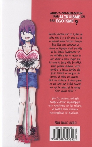 Kazumi Ichinose est un lycéen de seize ans. Il y a six ans, sa vie a basculé dans l'horreur lorsque Saki Mido, une camarade de classe de l'époque, s'est entichée de lui. Depuis, l'adolescent vit un véritable enfer à cause de cet amour à sens unique que lui voue la jeune fille. En effet, d'une jalousie maladive, cette dernière ne laisse derrière elle qu'un torrent de sang et de larmes, et même un cadavre... Peut-on continuer à vivre quand on est aimé par le Mal incarné sur qui la raison et la morale n'ont aucun effet ?